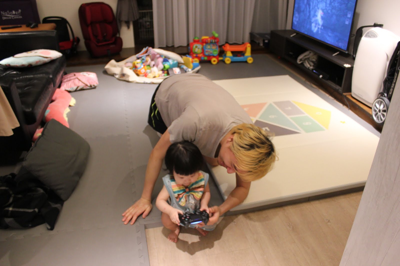 「乖,去旁邊玩積木車」