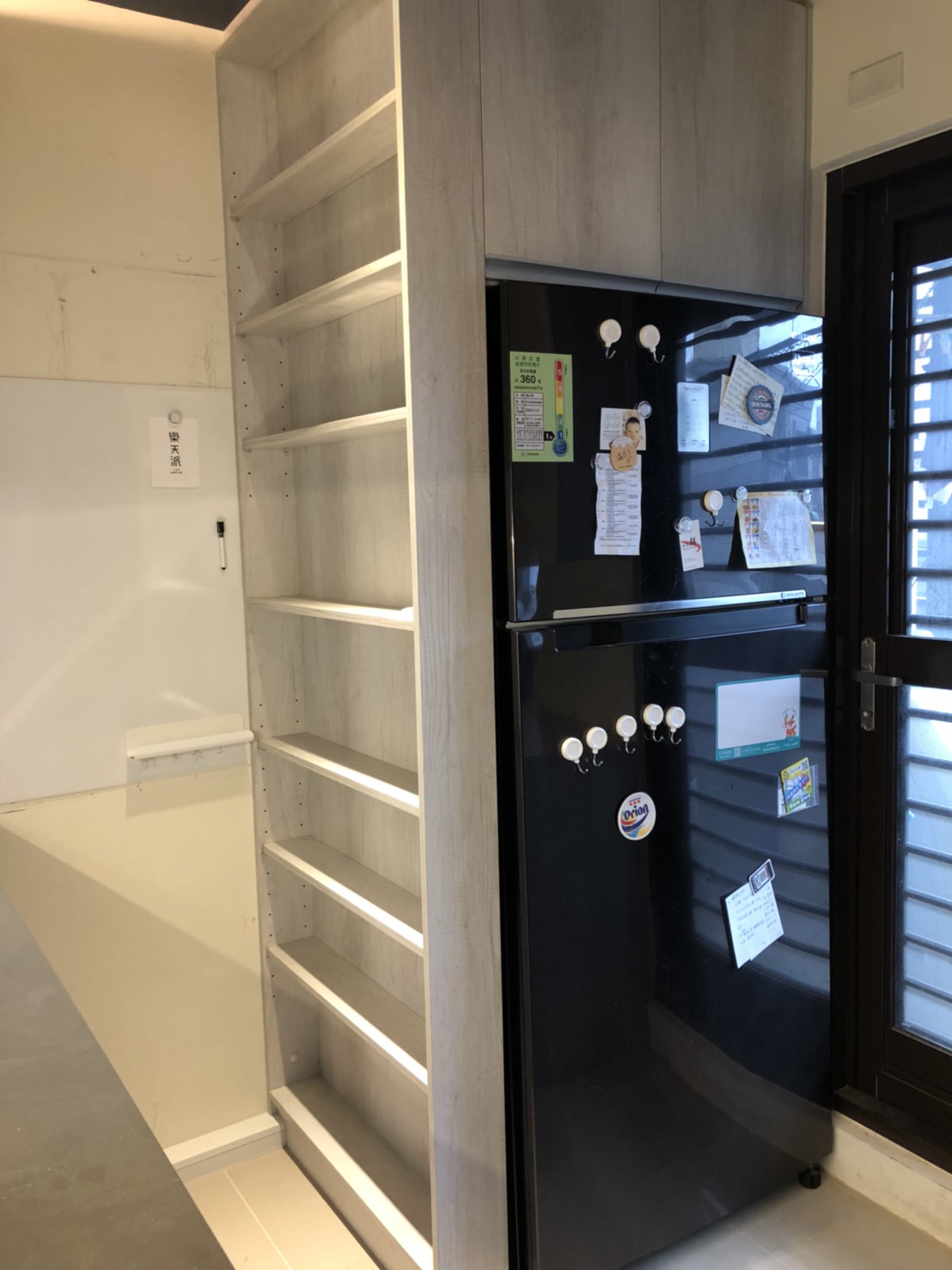 最大收納空間是冰箱旁邊的木架,這個設計一出我只能讚嘆M大,超強收納!
