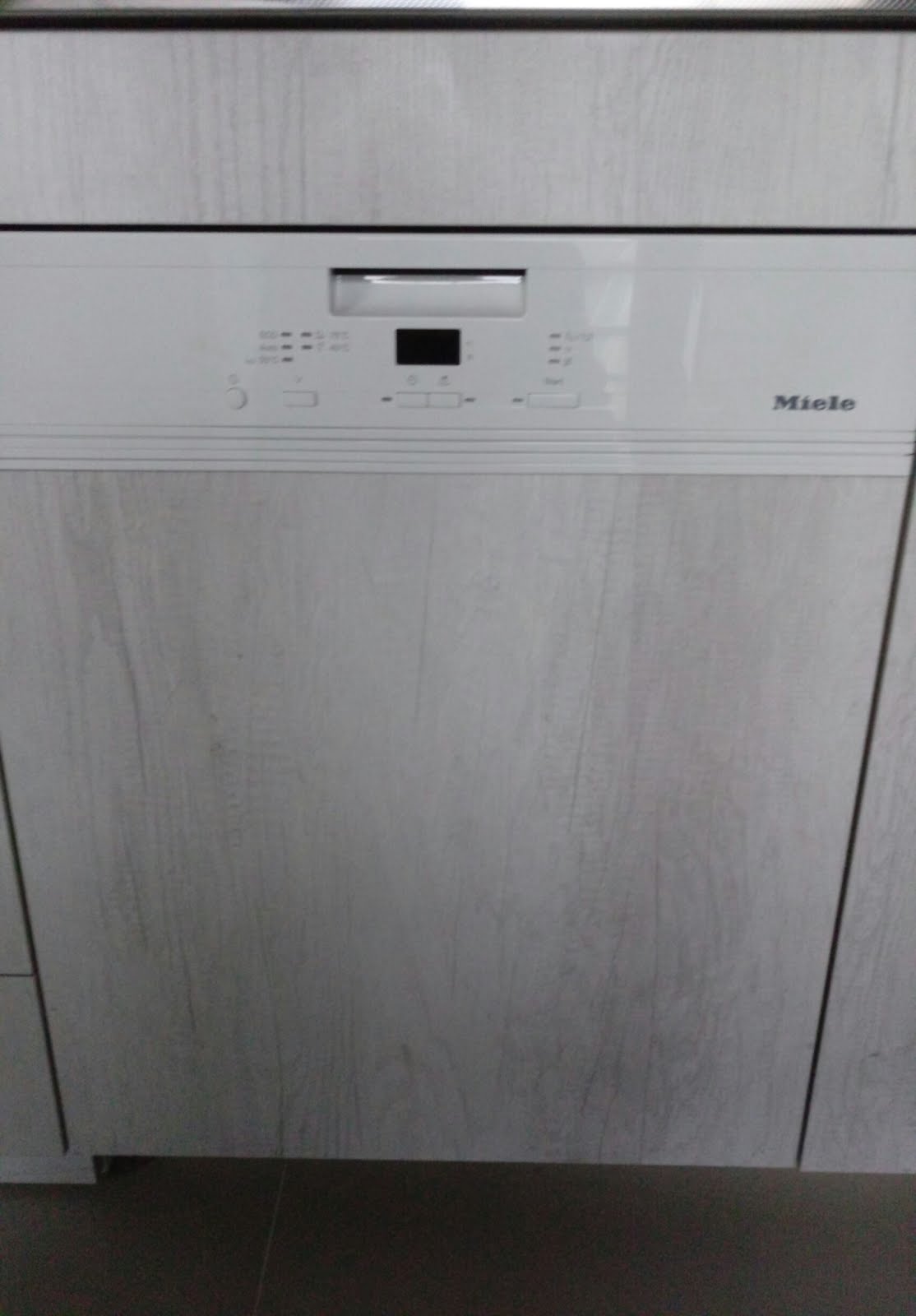 洗碗機取代烘碗機的位置,因為M大強調正確使用洗碗機之下是不需要烘碗機的,甚至瀝水槽只要水槽旁邊那一小塊就好,我被說服之後就沒有再堅持想要安裝瀝水架,但現在剛啟動廚房第一周真的很不習慣….隨手洗好的杯子跟盤子沒有地方可以放,所以僅有的小工作平台上又擺上了杯架、菜刀架等等,其實不想擺這些東西在桌面,也非常想要來個小烘碗機或者加裝瀝水架但也不知道該放哪裡….