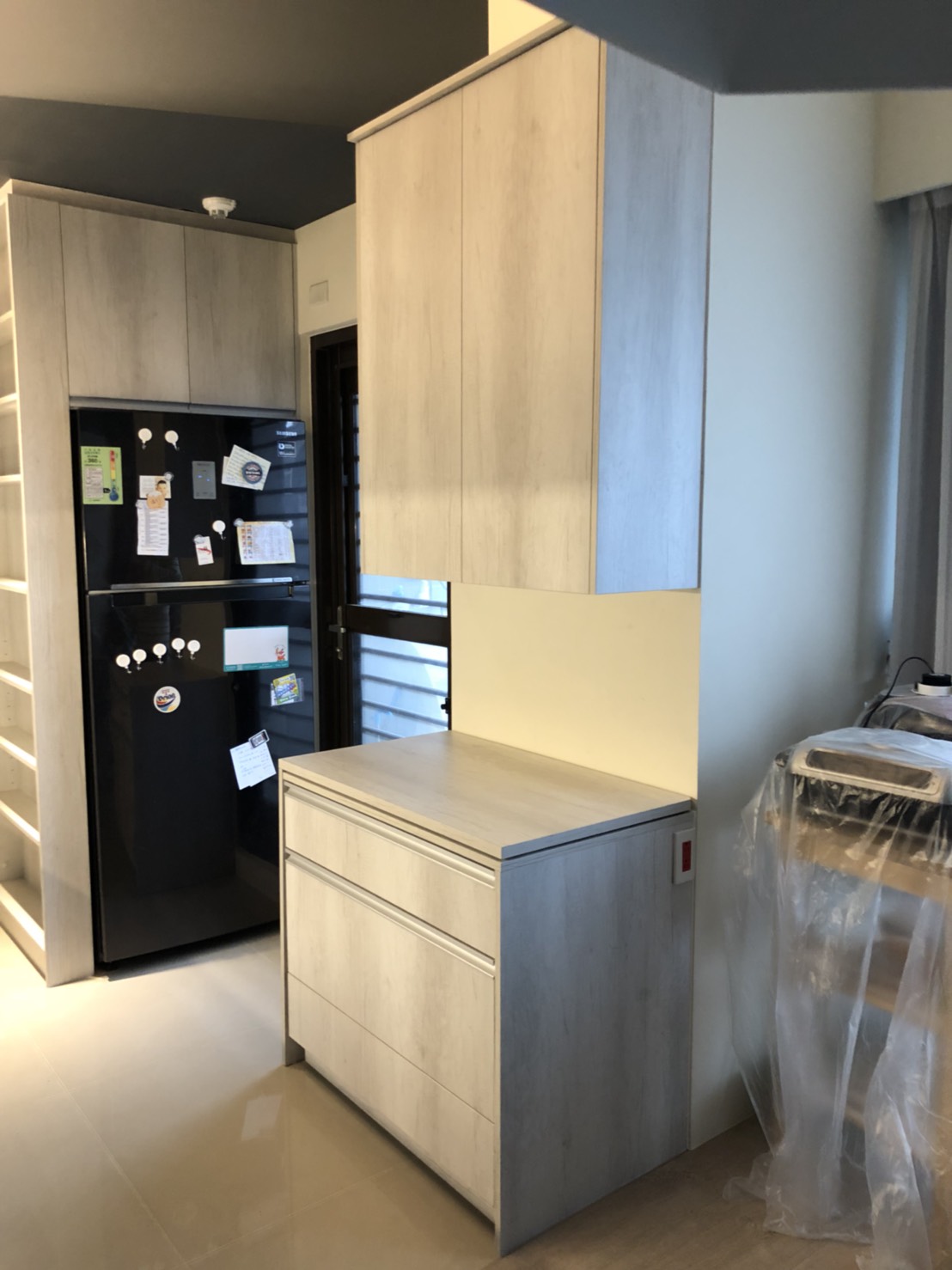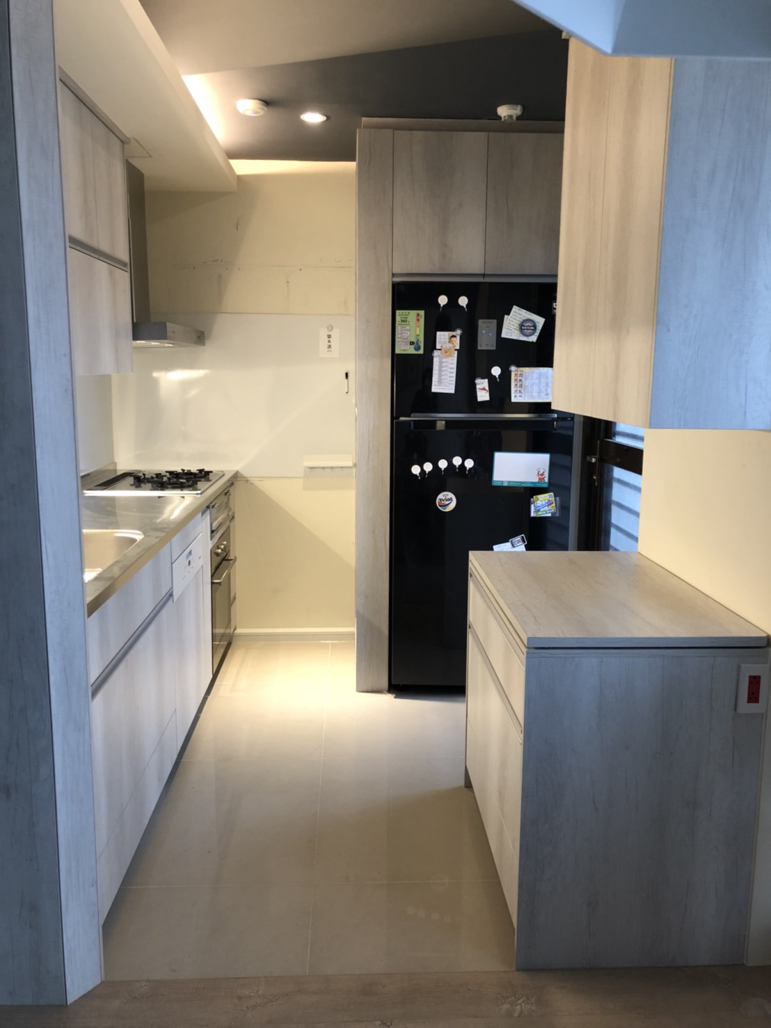 搬動冰箱是小事,廚房直接設計成I字型,瓦斯管線拉長移位、抽風機管線拉長移位才是大工程,也只有M大有這個勇氣敢去實現,其他廚具業者一聽到這樣改造直接縮回去。