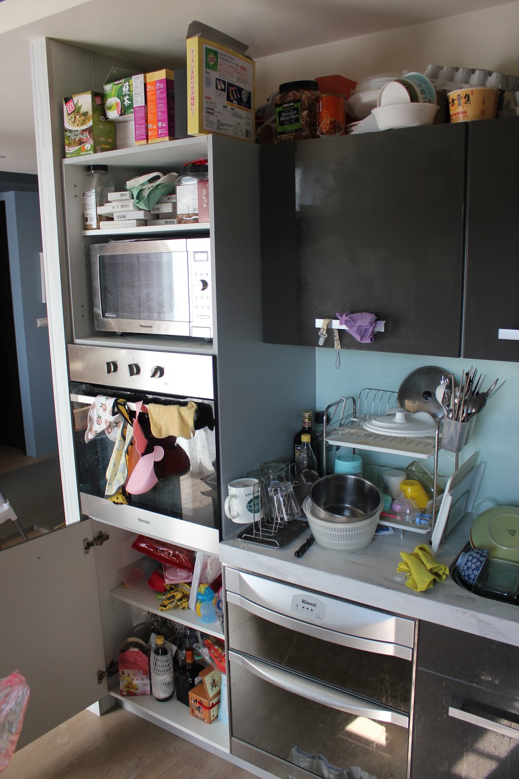 現在沒有門把可以抓,頂多會騷擾烤箱的把手或者旁邊的開放置物架…