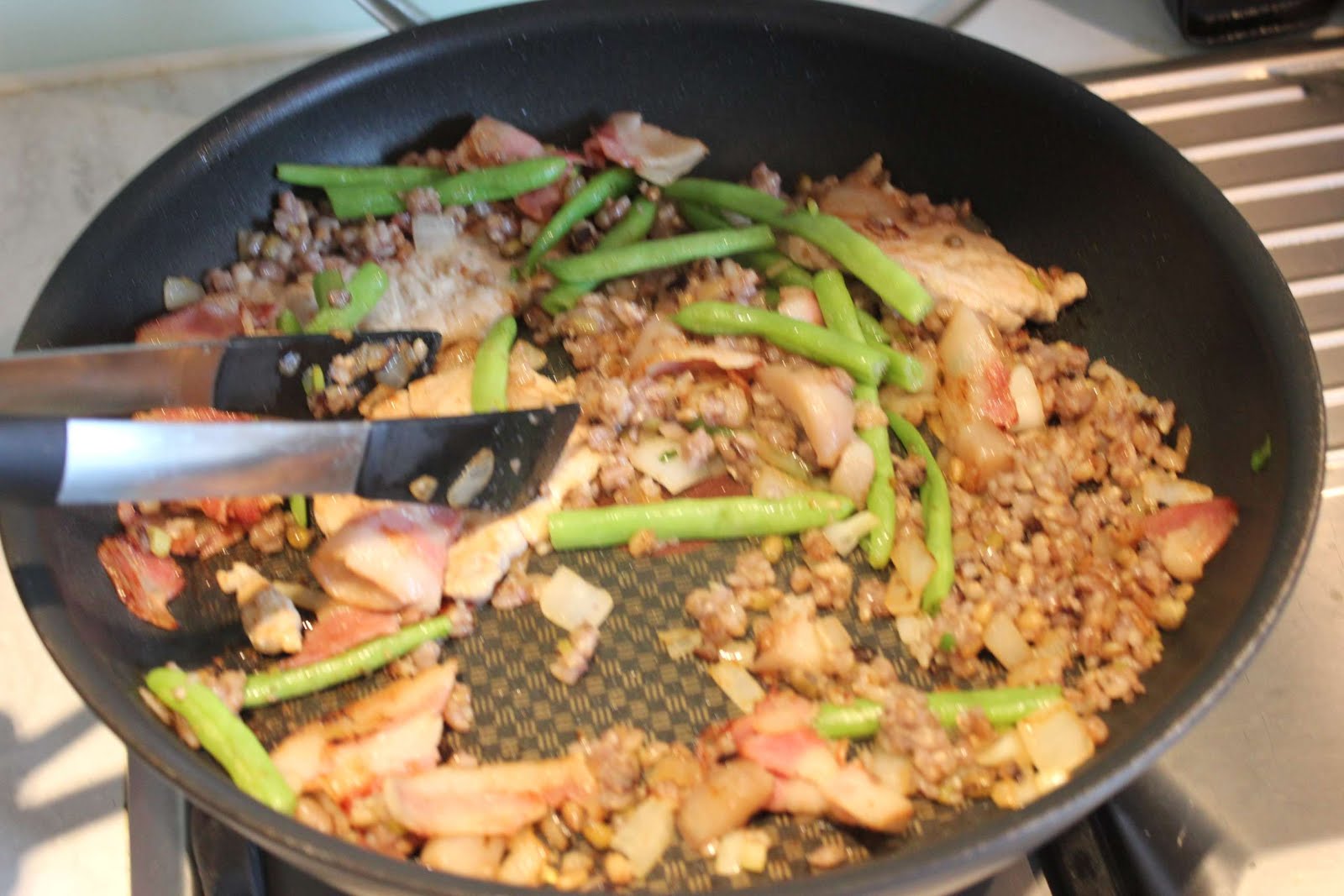 然後油煙就爆表啦啦啦啦啦啦!!! 437萬應該就是大馬路等級了吧? 站瓦斯爐旁就是在吸這些!培根的油脂過了冒煙點,爆香洋蔥的結果就是空氣嚴重汙染。