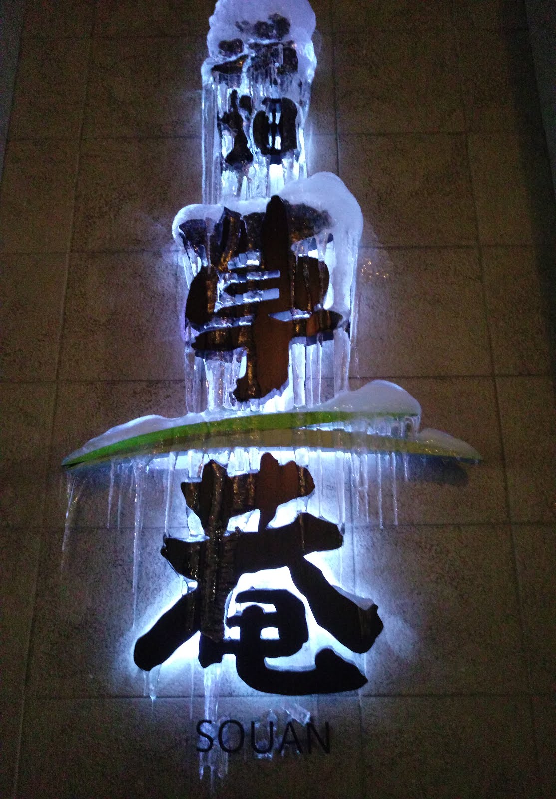 我們在大雪紛飛的商店街等了半個小時,看板都已經結了厚厚的一層冰。