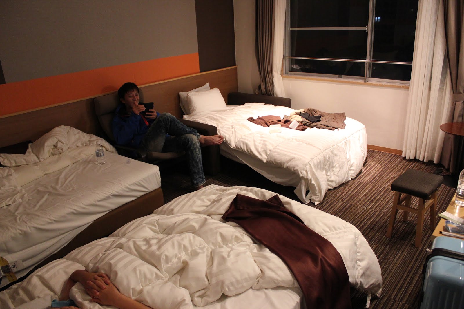 吃飽了之後我們才回到房間,當初訂的是兩張單人床的房型,有注記會多帶一個十歲的小孩,本來以為要輪流睡了,結果一進去就看到竟然是三張床!(一張由沙發改裝)