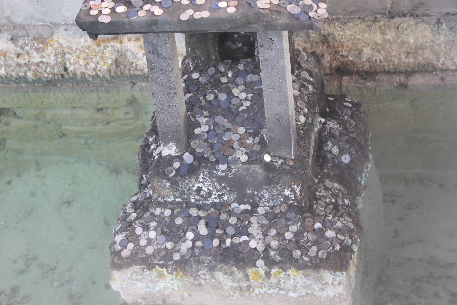 然後裡面不知道誰弄了一個石燈籠,果然糗了,被遊客用零錢丟滿,跟小便斗內的假蒼蠅貼紙有異曲同工之妙。