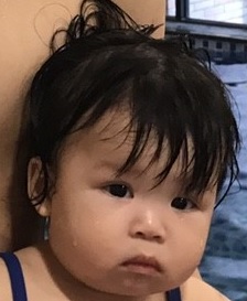 可能是因為太早起床太早來,還是泳池的回音太多,軟Q有點厭世臉。