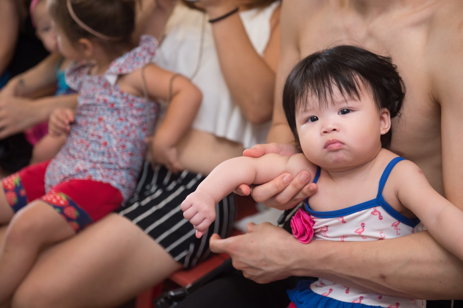 到櫃檯報到後,領取下水裝備才知道有寶寶泳褲,還有防漏褲兩層保護,最後才是穿上泳衣,不然游到一半跑出不明漂浮物就難收山啦~~