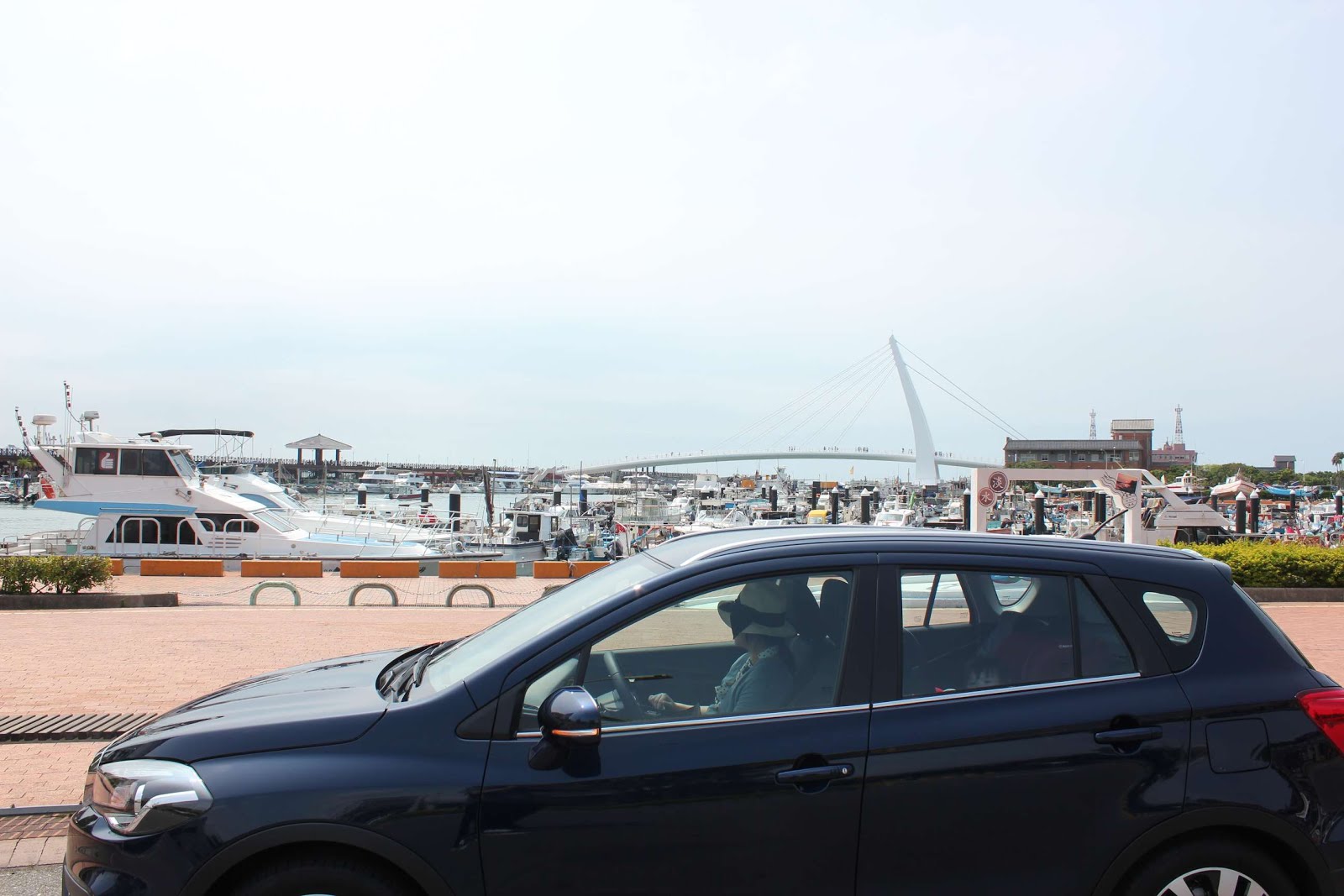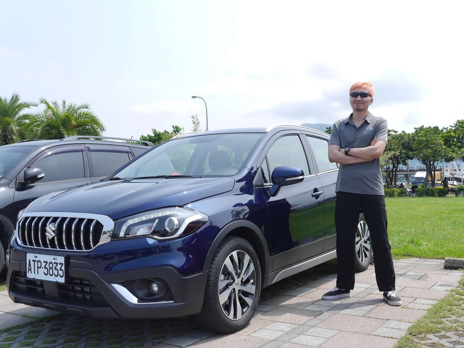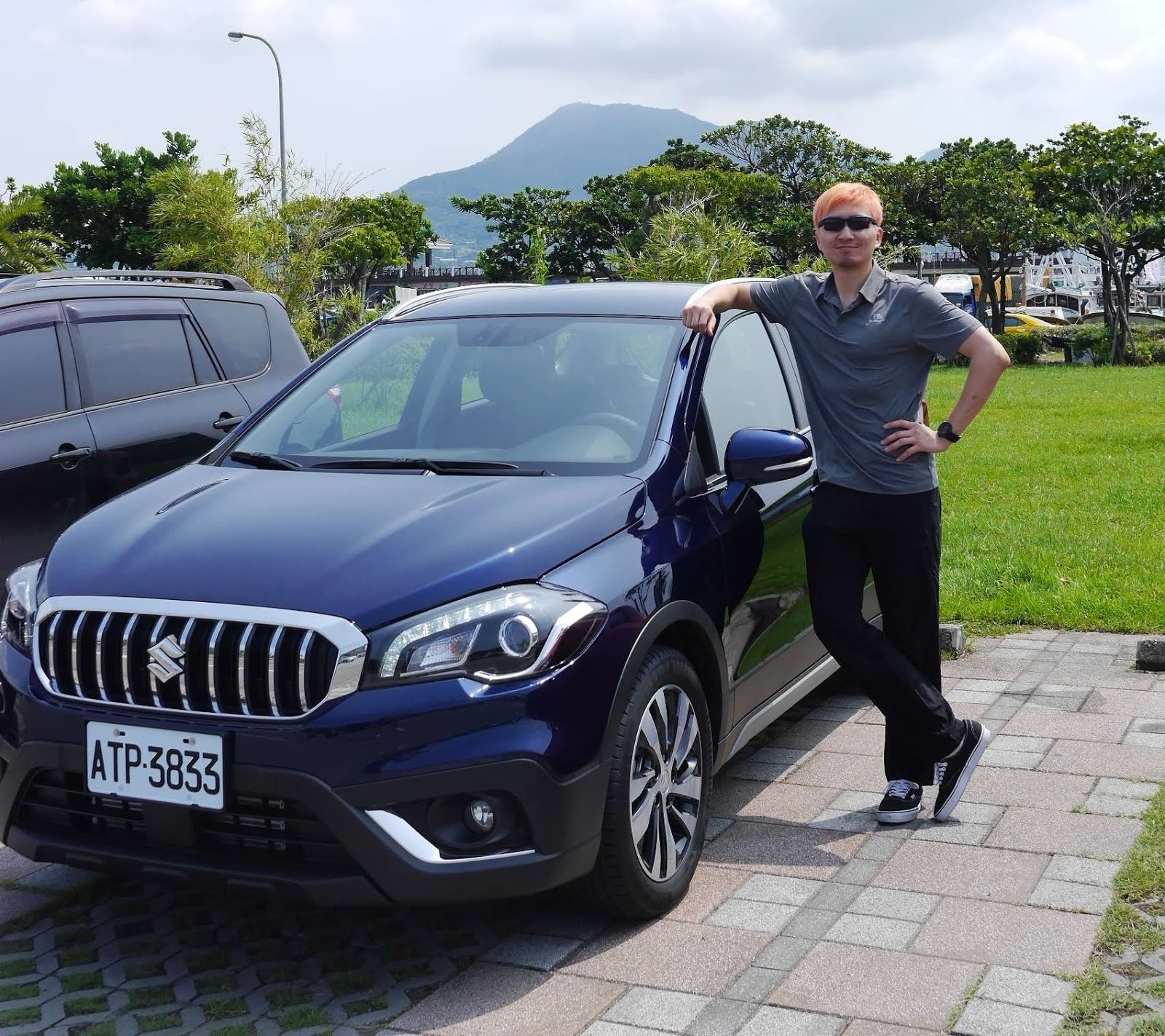 停好車,請老婆幫我跟車子合照,髮型一定要照顧一下。